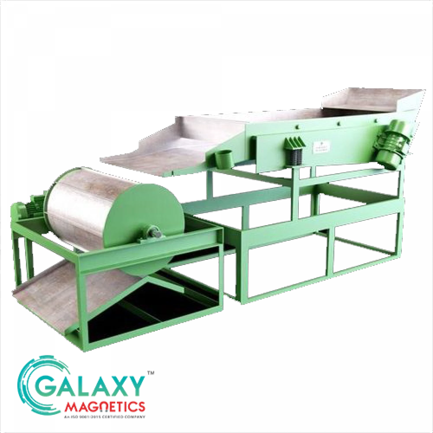 The Drum Type Magnetic Separator by Galaxy Magnetics is a powerful system that efficiently removes iron contaminants from bulk materials in industrial processes. It is widely used in mineral processing, chemical, food, plastic, and recycling industries. This equipment guarantees consistent product quality, improves purity, and boosts operational efficiency.
